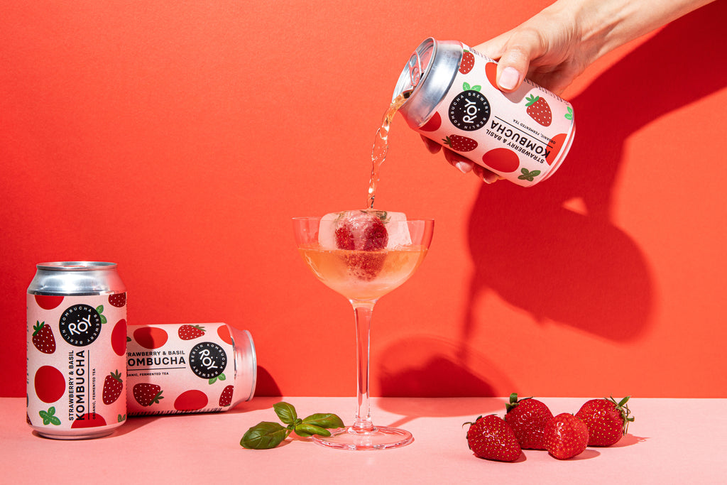 ROY Strawberry & Basil Kombucha is our take on capturing that unique summer feeling in a can. It brings back childhood nostalgia, reminiscent of strawberry-filled summers while adding a modern twist through a hint of earthy basil.